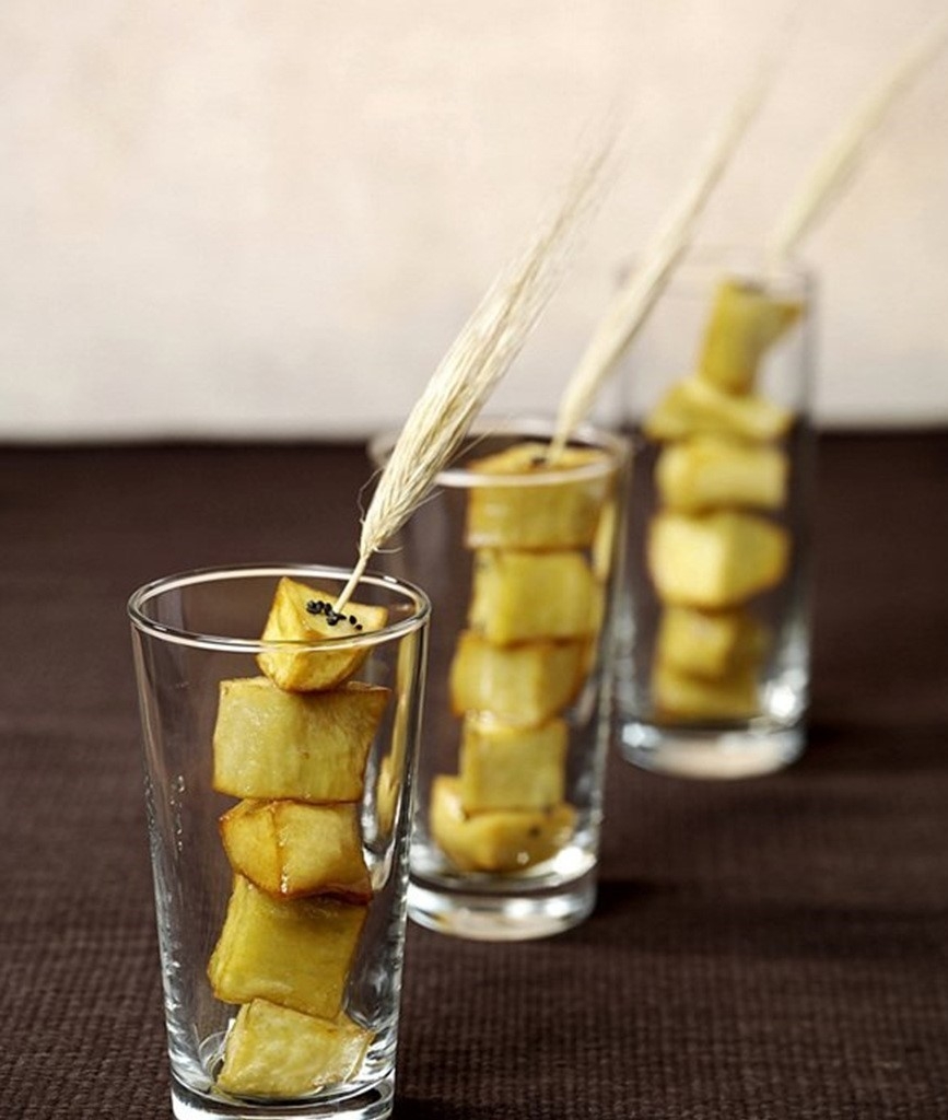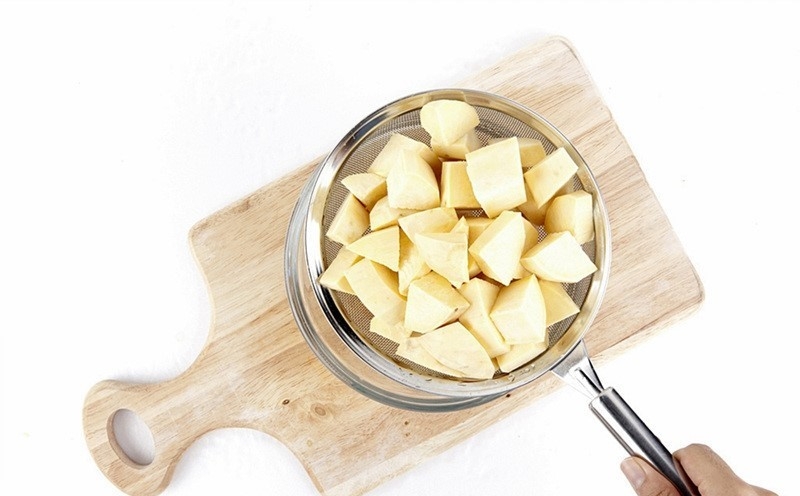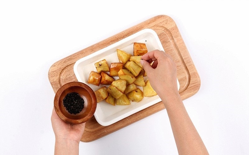 고구마는 껍질을 벗기고 한 입 크기로 큼직하게 썬다.
