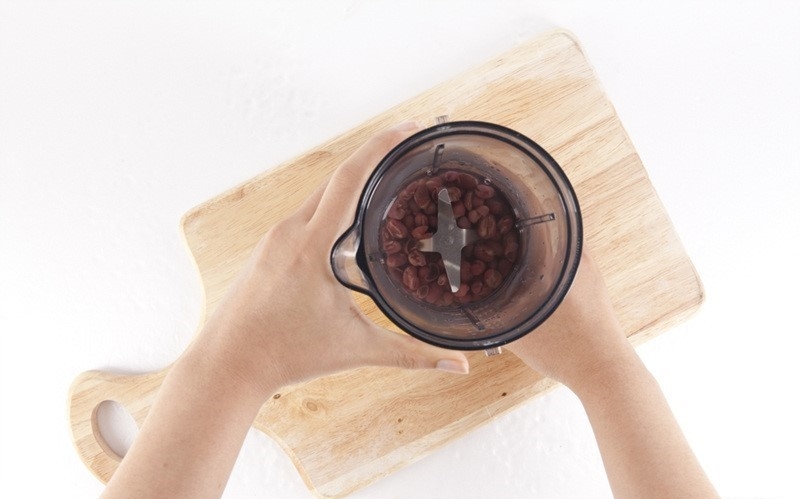 믹서에 삶은 팥과 물 2컵을 넣고 곱게 간다.