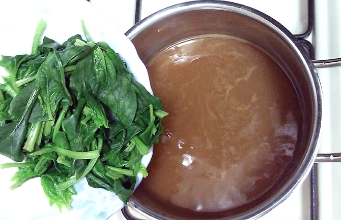 시금치된장국 끓이는 법에서는 이 타이밍이 가장 중요합니다.
