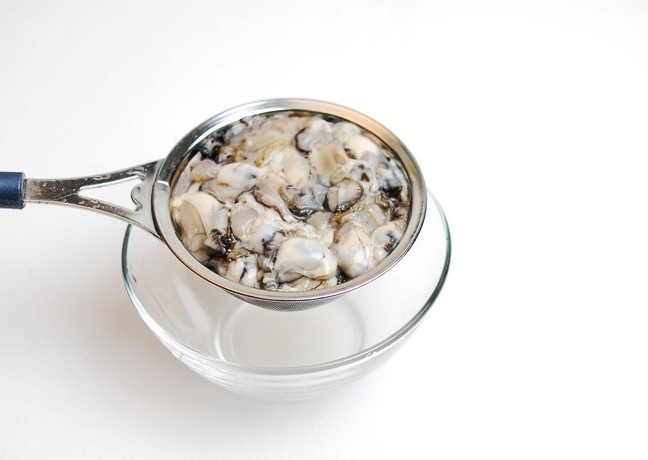 생굴은 옅은 소금물에 살살 흔들어 씻은 뒤,